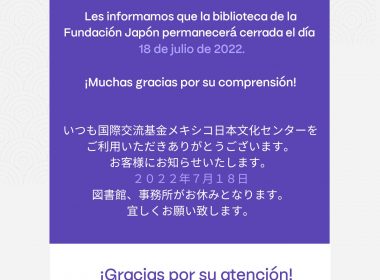 Read More Biblioteca Días de descanso en julio Les informamos que la biblioteca de la Fundación Japón permanecerá cerrada el día 18 de julio de 2022.…
